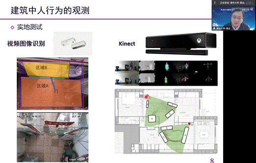 清华大学燕达教授以《建筑中的人行为观测与建模》为题,指出使用者用能行为因素使得目前的能耗模拟结果与实测存在巨大差距,因此,需针对建筑中的人行为开展深入研究,通过追因与特征分析,更科学精确地刻画建筑中的人行为,推动其在建筑设计与运行等工程及政策制定中的应用。报告详细介绍了人行为观测的实地测试、虚拟仿真、问卷与访谈、大数据采集方法,基于时间相关性、环境反馈性、个体多样性分析分别构建了相应的行为模型。