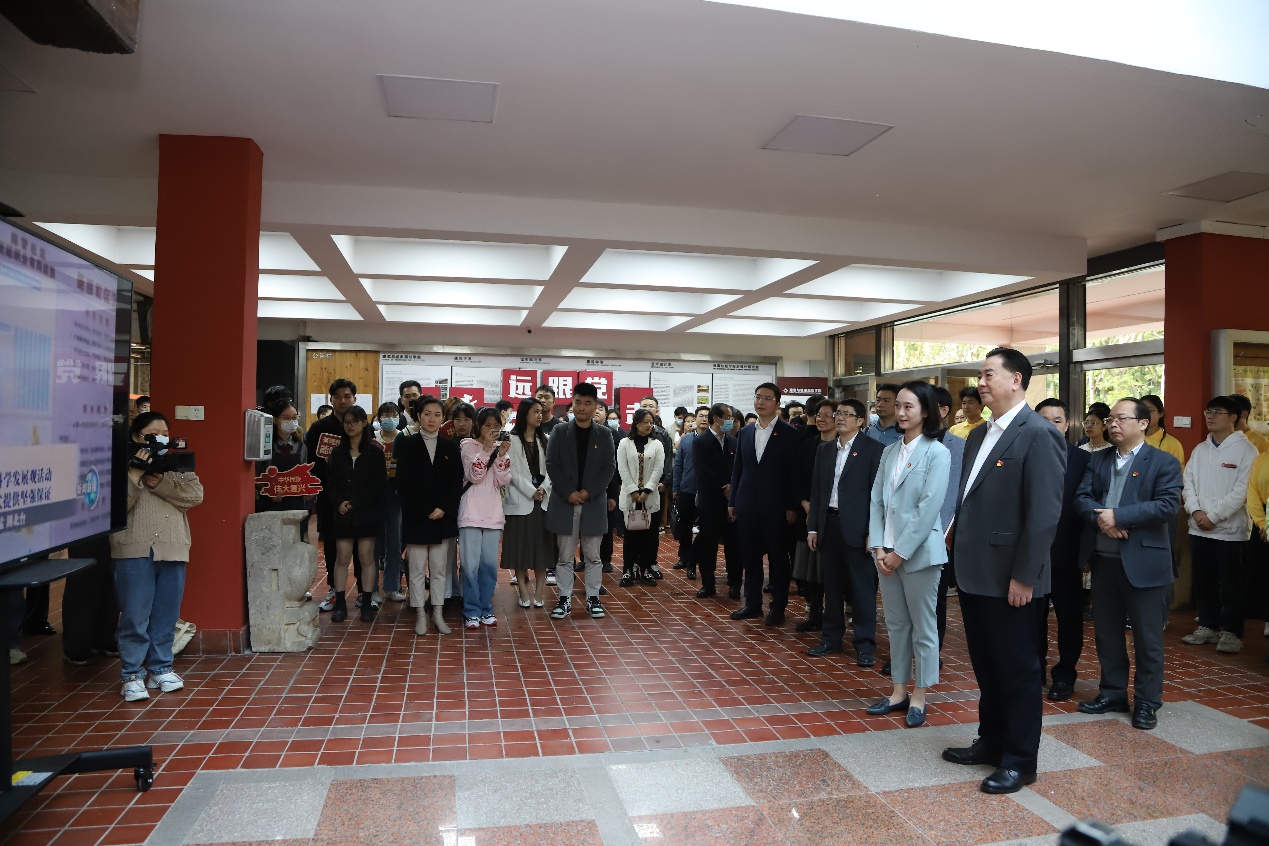 在党的二十大精神主题学习开始之前,与会领导和青年师生一起参加了“追寻领袖足迹,筑梦民族复兴”主题展示活动。