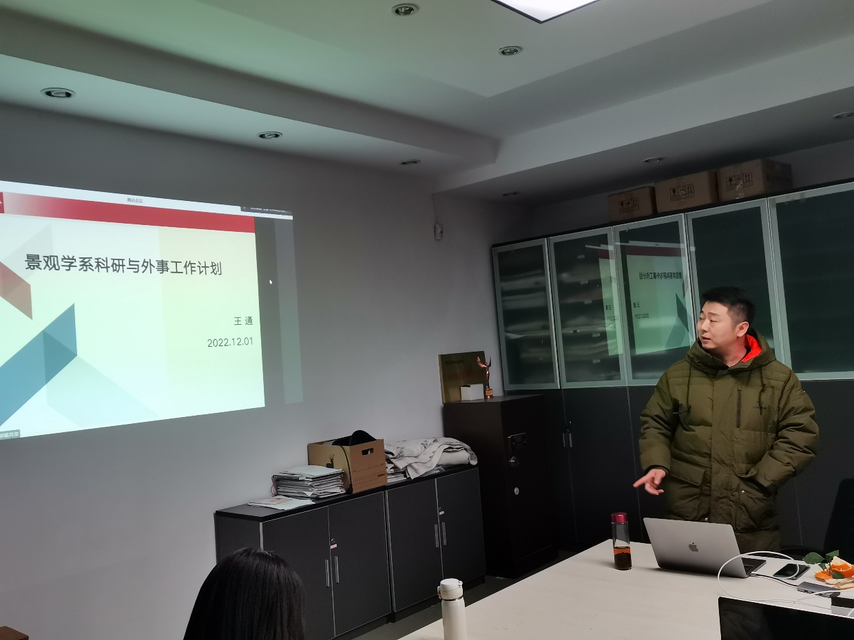 分管科研的王通针对科研与外事工作进行汇报交流,他针对未来政策导向,在自主创新太阳集团、国际合作交流、师资队伍建设等方面,为景观学系的2022—2024计划,甚至2024之后的发展,提出了若干建议(图6)。