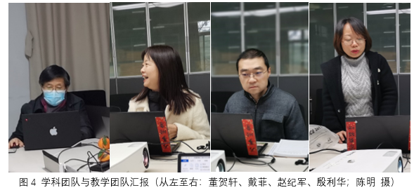 景观学系的学科团队与教学团队带头人均为一人兼职,因此,按照四位教授所带领的学科团队与教学团队,由团队负责人分别介绍2022年所取得的成果以及对2023年的展望(图4)。汇报顺序为董贺轩所带领的风景园林设计及其理论、戴菲所带领的地景规划与生态修复、赵纪军所带领的风景园林历史理论与遗产保护、万敏所带领的工程景观与植物。总体汇报过后,各学科团队与教学团队分组展开交流,谋划未来的发展方向。过程中,赵纪军还跟各位老师分享教学优秀质量奖的申报过程与体会,为即将申报本年度教学优秀质量奖的老师们提供了宝贵建议。