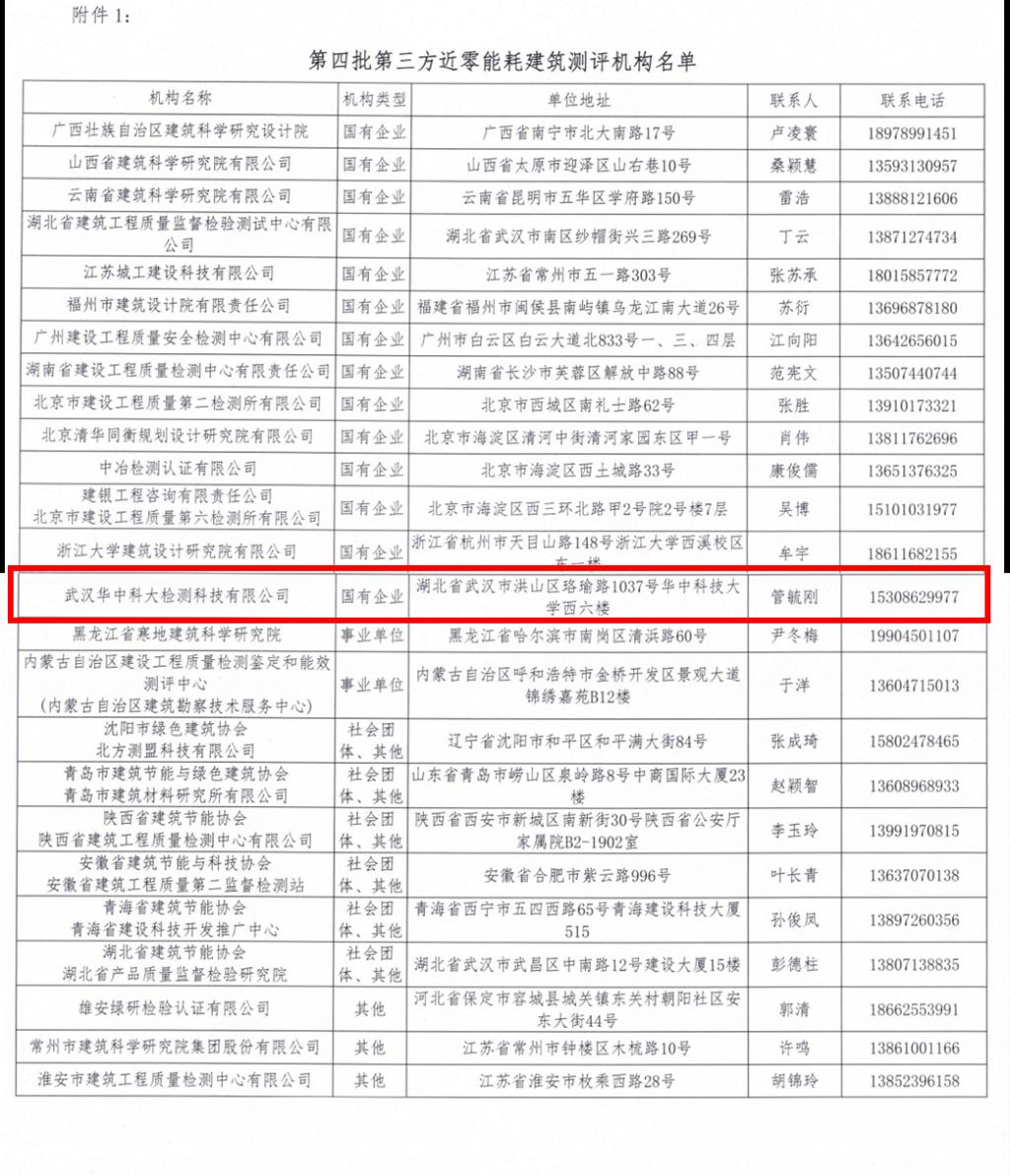 近期,中国建筑节能协会发布了《关于发布全国第四批第三方近零能耗建筑测评机构名单的通知》,由我院建筑学系陈宏教授领衔的绿色建筑科研团队申报的“武汉华中科大检测科技有限公司“位列其中。