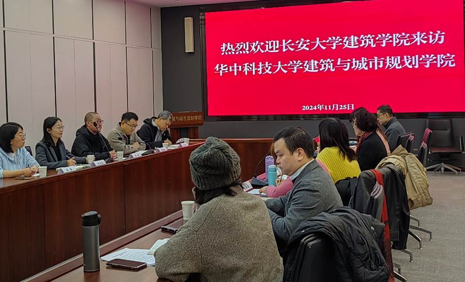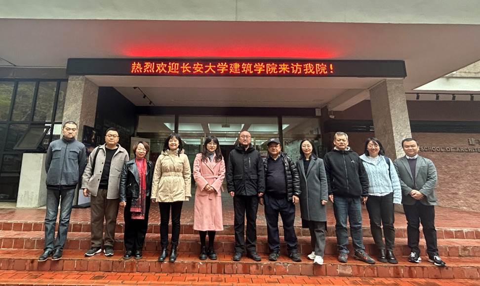 11日25日上午,长安大学建筑学院白骅副院长、规划系杨俊涛副主任、建筑学系何文芳教授、风景园林系岳红记教授和郑颖副教授一行来我院访问交流。我院李小红党委书记、彭翀副院长、景观学系学科带头人万敏教授、戴菲系主任、赵纪军副系主任、殷利华副系主任、建筑系韩梦涛副系主任参加了会谈交流