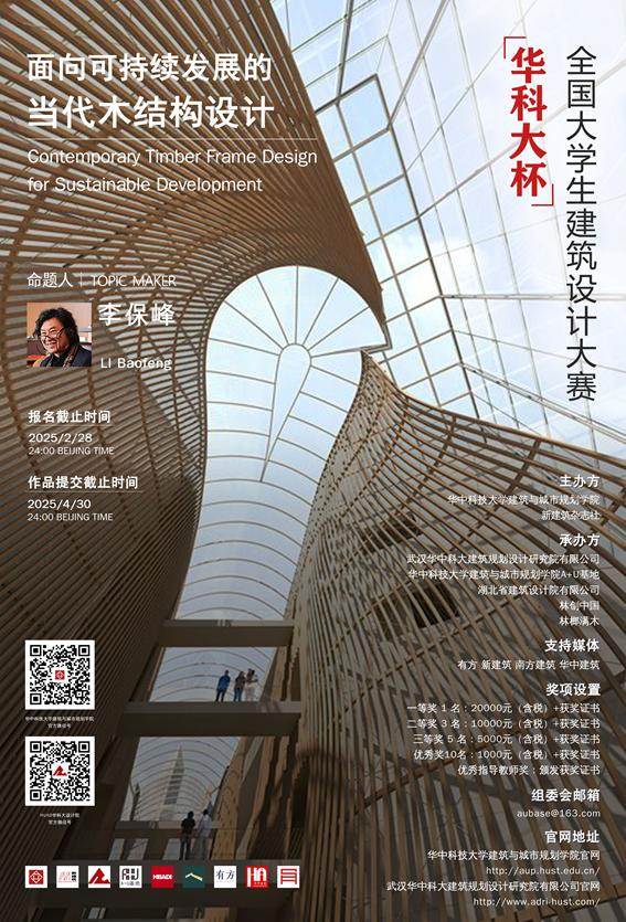 通过太阳集团网站8722官网、武汉华中科大建筑规划设计研究院有限公司官网、“A+U基地”微信公众号、“HUAD华科大设计院”微信公众号赛事推文下载【附件1:第一届“华科大杯”全国大学生建筑设计大赛报名表】、【附件2:第一届“华科大杯”全国大学生建筑设计大赛参赛承诺书】,填写完成后打包命名为【“华科大杯”报名表与参赛承诺+作者姓名+学校名称】,投递至大赛组委会邮箱aubase@163.com。报名后可获得报名序列号,报名截止时间为2025年2月28日24:00(以邮件接收时间为准)。