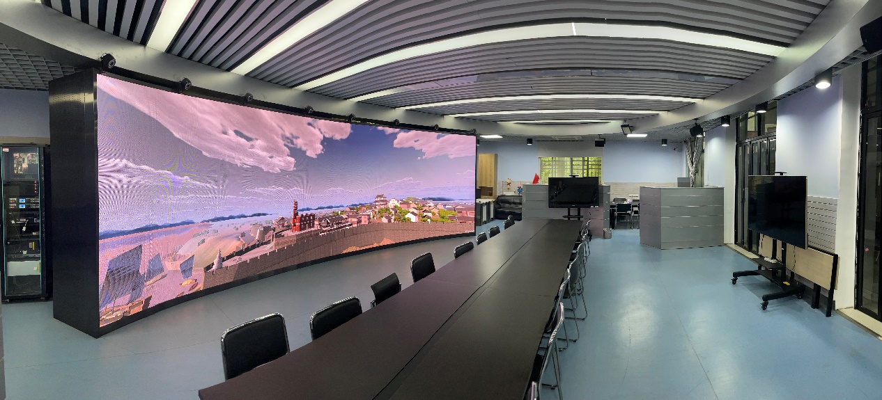 人居环境虚拟仿真实验室位于南四楼N107“健康与智慧人居环境全过程设计实验平台”A区,建筑面积130平方米,主要任务是以虚拟现实人居环境设计仿真实验环节,让学生身临其境地感知不同类型城市空间、经典建筑作品等人居环境形态给人带来的不同认知体验。通过利用Mars空间模拟仿真系统等技术手段,既能让学生直观地感知空间尺度、材料色彩、建筑及城市环境,也能在此基础上进行建筑、景观、规划等不同尺度层面的设计交互,并通过虚拟建造、虚拟规划、虚拟多视角交互等新技术设计方法训练,强化学生对智慧化空间设计技术的认识。