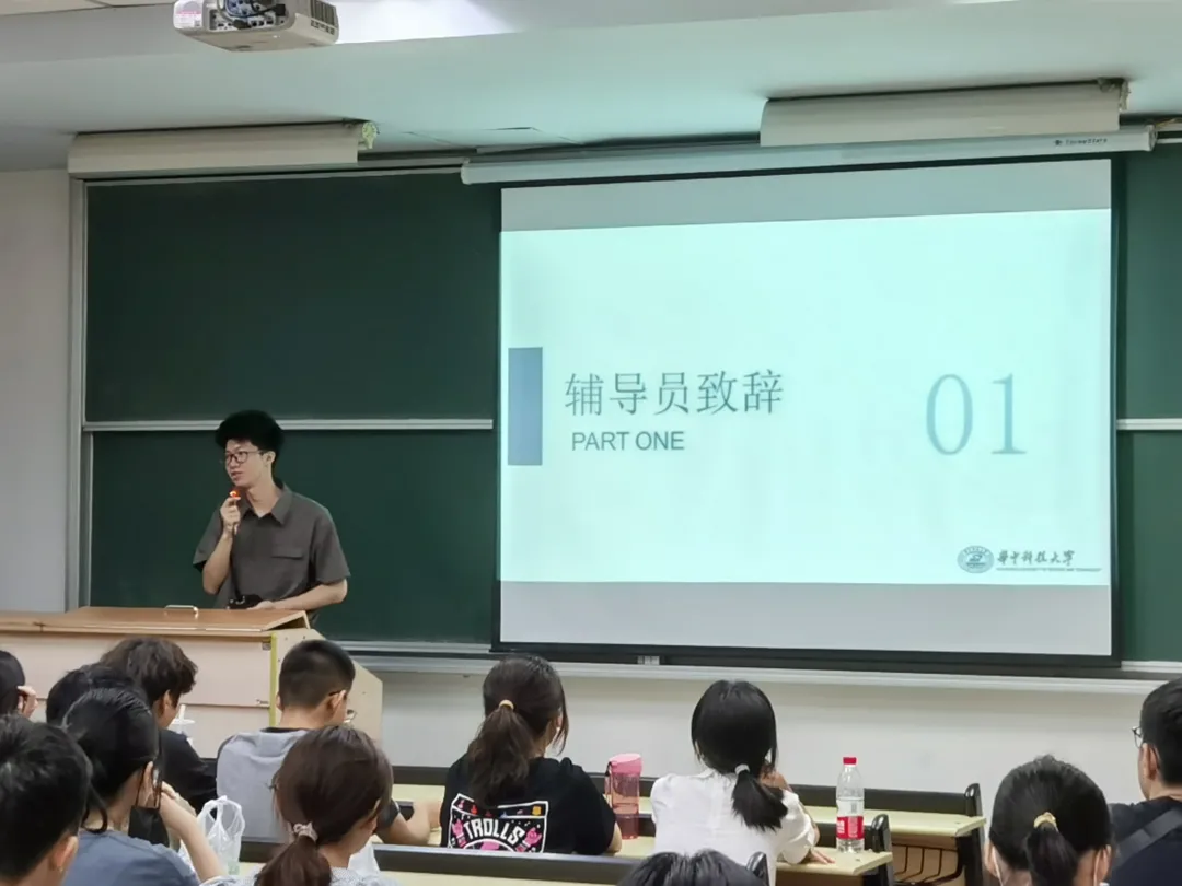 在环艺数媒专场,首先由叶少华辅导员致辞,给大家描绘了大学生活的大貌,并对新生给予厚望,加油鼓劲。