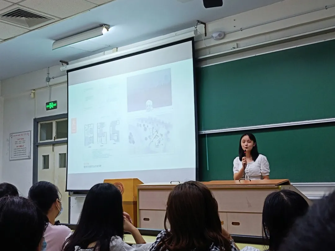 第一位上台分享的是环艺的尤芷若学姐,她用风趣幽默的表达向大家展示了环艺的学习内容,并在吐槽压力的同时,传递给大家满满的正能量。
