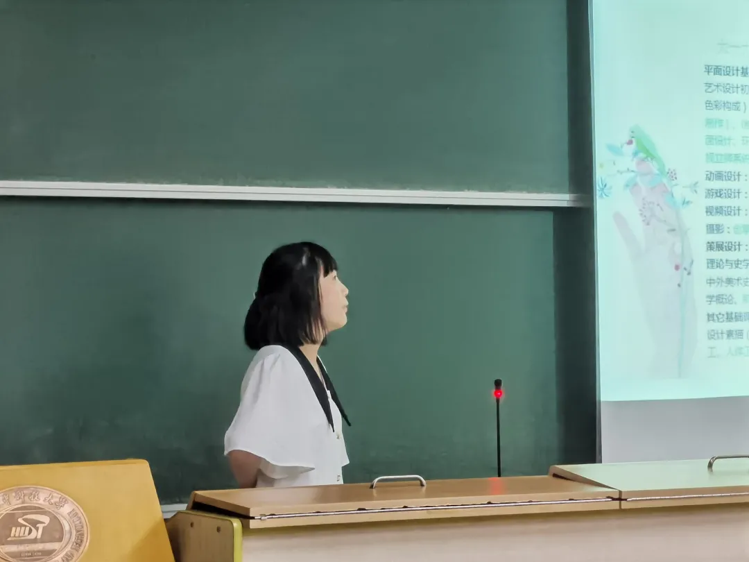 第二位上台分享的是数媒的马清溪学姐,她深入浅出地介绍了动画方向的内容并对就业方向和实习经历提出了自己的看法。最后的答疑环节,尤芷若学姐回答了转专业相关问题,解答了部分同学的困惑。