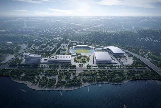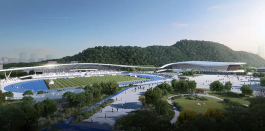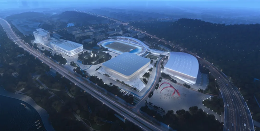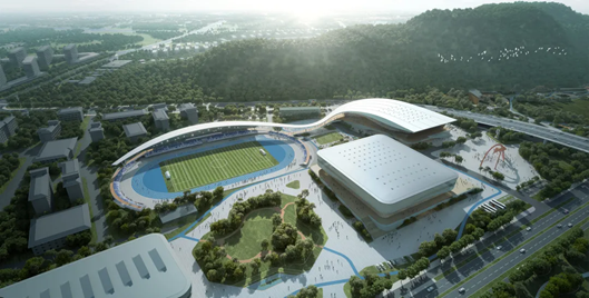 体育中心位于江山城南新区与城北老区交接处,体育中心着眼于城市与建筑的互动,通过“开放通达、绿色生态、智慧共享”的设计理念,打造江山市新的体育产业聚集地,让全民健身理念和健康生活方式走进市民生活之中。