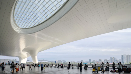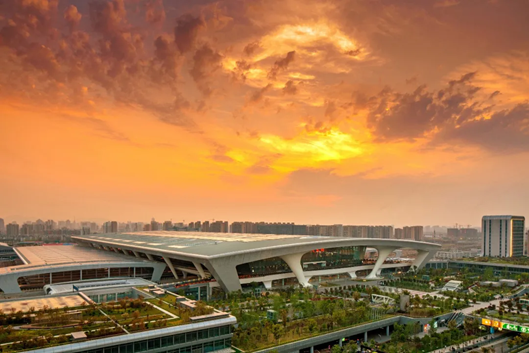 杭州东站是国内最早实践TOD站城融合理念的交通枢纽之一,建筑形式清晰表达结构逻辑,体现面向未来的时代精神。项目采用“异型钢斜柱+大跨度变截面钢桁架”新型结构体系,实现了无缝复杂双曲面表皮以及建筑光伏一体化等技术应用。