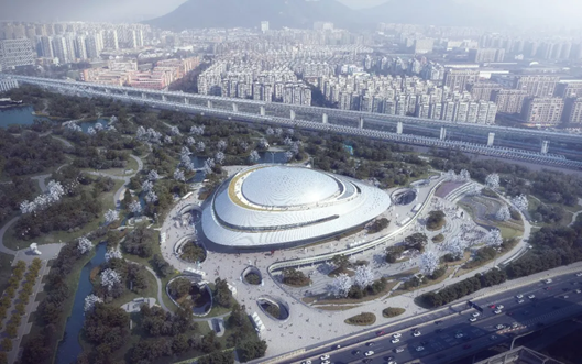 项目为2022年杭州亚运会水球比赛场馆。设计基于创造“生态友好型场所”的理念,在满足泳池功能、流线的前提下,通过巧妙地布局模式,保证了三个泳池良好的自然通风和采光,完成了一次巨大建筑体量与狭小用地间的极限挑战。