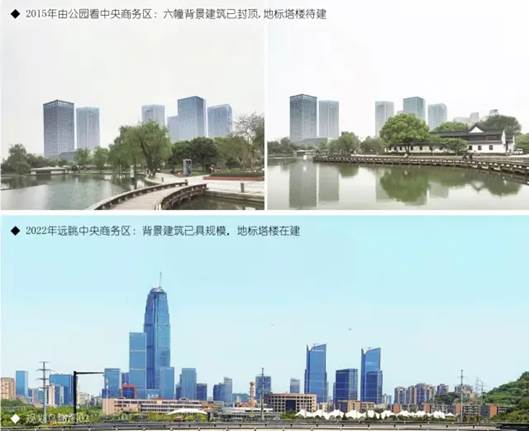 上位规划将台州新中心区置于两山之间的斜轴上,中央商务区位于几何中心。本案先以宏观视角注入五个公园:以中央公园营造斜轴绿廊核心,以不同业态的四小公园对接周边四大功能区,促成大疏大密的公园型CBD;再以二八原理导控建筑秩序:两幢260米塔楼作为“地标建筑”突出个性,其余大楼作为“背景建筑”强调共性。从近15年的建设效果看,该理念获得了各届政府认可,仍在有序落地中。