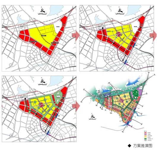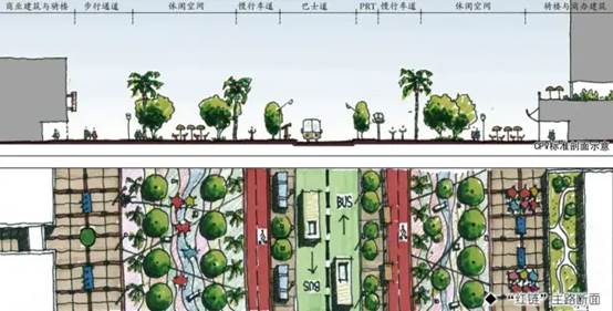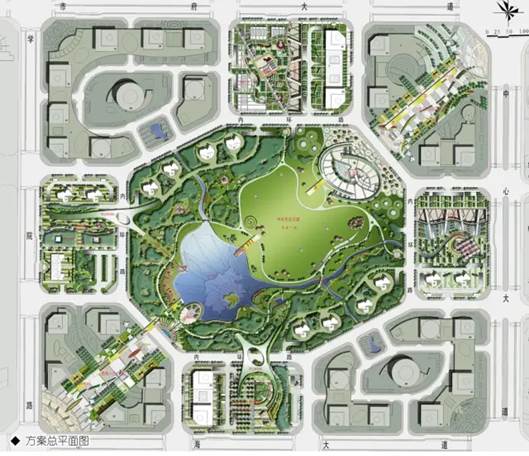 针对城市中心区自身特征及惯有弊端,紧扣高效-功能规模与布局模式、活力-交通组织与街道模式、宜居-体验场所与生活模式,营造公共活力“红链”、生态宜居“绿链”,创建基于低碳模式下的高效、活力、宜居之城。