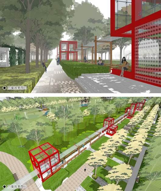 吸取深圳产业园特色,以架空、连楼、底商、混搭为手段,为年轻人营造居业融合的中低容量创业园。整体布局为绕中心绿地的“九宫格”,集研发孵化、配套服务、员工宿舍于一体。一层引入餐娱购物等配套,10米标高设景观平台及跑道串联各区,宿舍区可拎包入住。