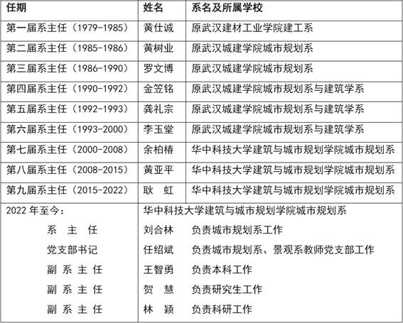 1985年2月,武汉建筑材料工业学院城市规划专业在校的三个班搬迁至原建设部所属武汉城市建设学院,并成立武汉城市建设学院城市规划系,同时成立相关的城市管理系和风景园林系。
