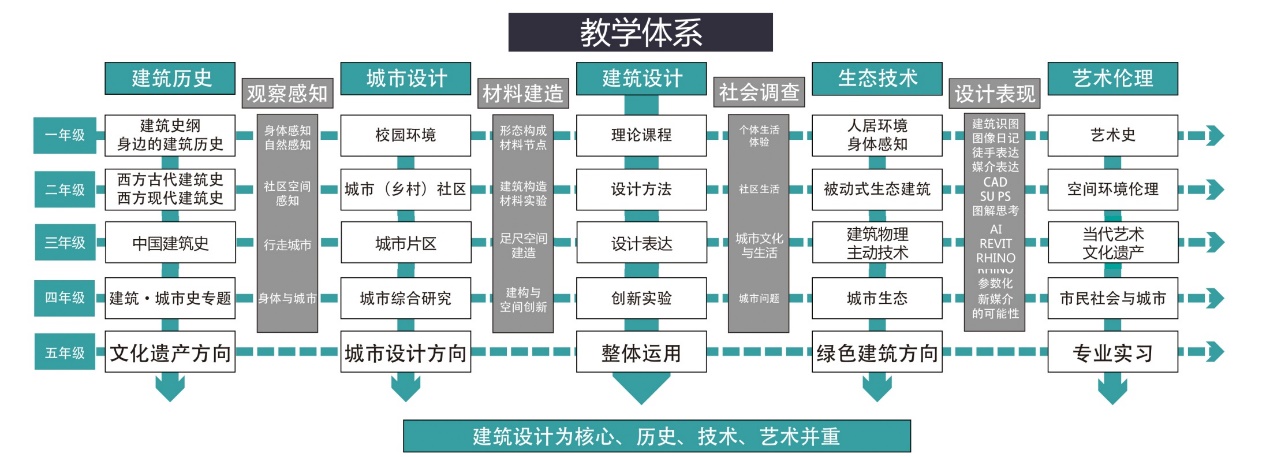 创新培养模式,推进分类培养。提倡复合型、多元化人才培养模式。依据建筑学本科指导性专业规范,实施中低年级创新思维和创新实践特色课程、高年级文化遗产保护、绿色建筑及城市设计的精细化人才培养方向。